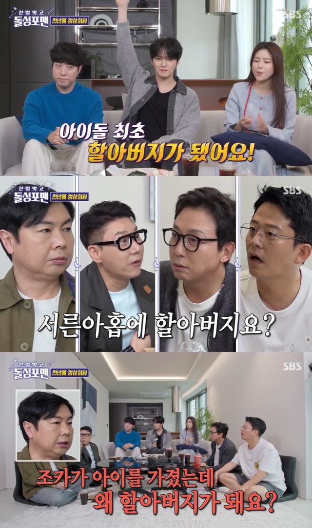 이상민은 김재중에게 축하할 일이 있다며 "아이돌 최초 할아버지가 됐다. 조카가 아이를 낳았다"고 말했다.