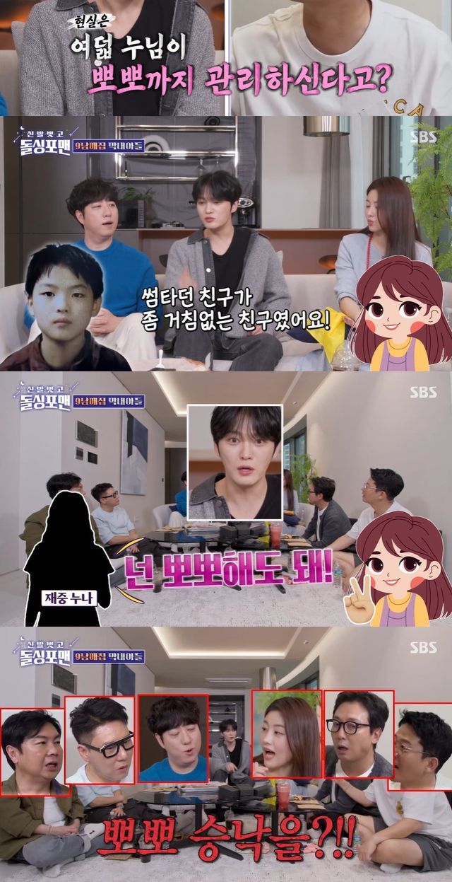 하지만 첫 키스 상대방도 누나의 허락하에 결정된 것이었다고. 김재중은 "알고 보니까 그것조차도 누나가 '너는 해'라고 승낙을 해줬던 사람이더라. 누나는 그걸 다 지켜보고 있었다"고 당시 상황을 설명했다.