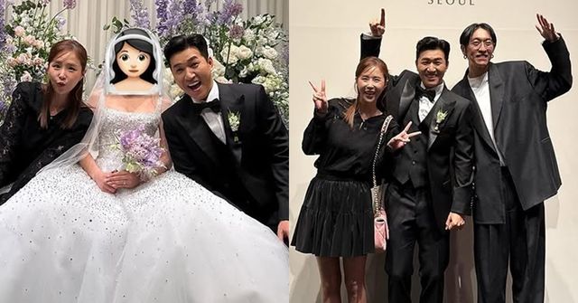 김종민과 비연예인 신부의 결혼식에 참석한 코요태 신지, 빽가 / 신지 인스타그램
