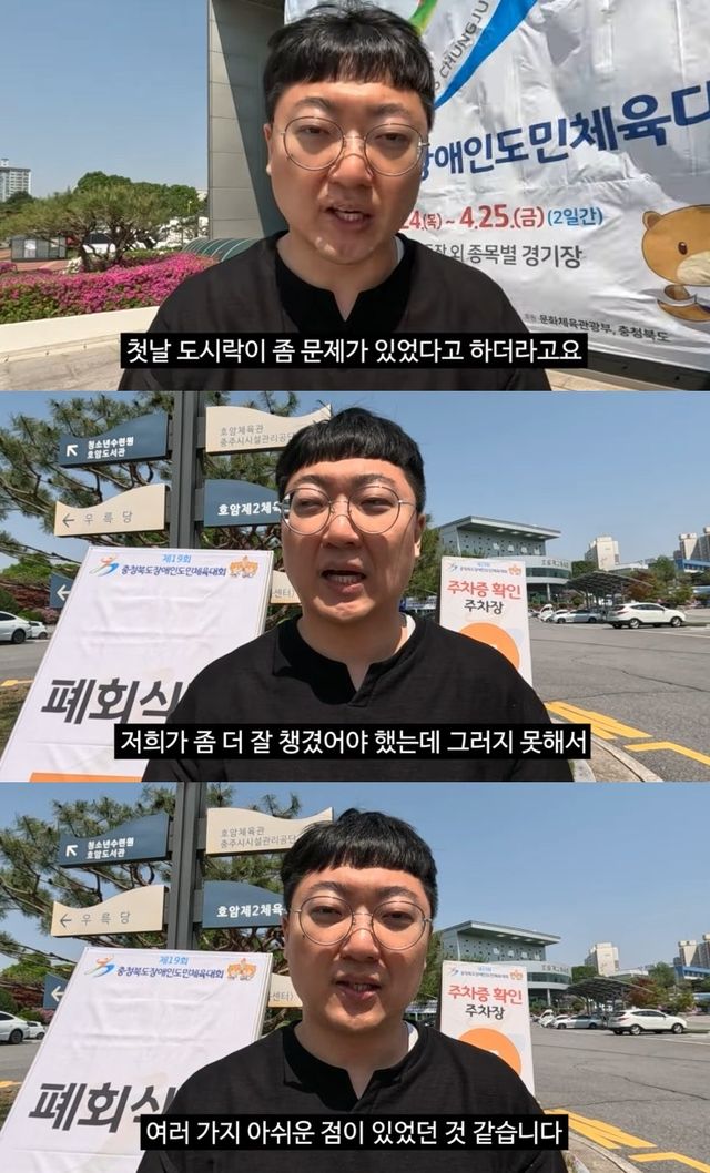 최근 열린 제19회 충북장애인도민체육대회에 제공된 1만2천 원짜리 도시락 내용물이 부실하다는 논란이 일었던 바.