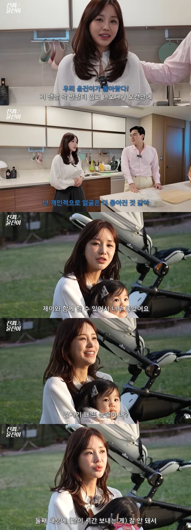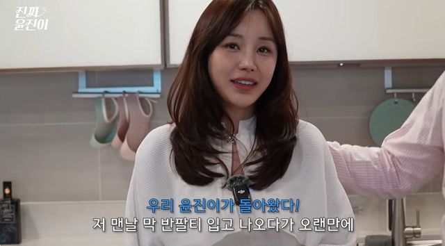 해당 영상에서 윤진이의 남편은"확실히 출산을 하긴 했지만 건강하게 생활을 하다 보니까 개인적으로 얼굴은 더 좋아진 것 같다"며 아내를 향한 애정을 드러냈다.