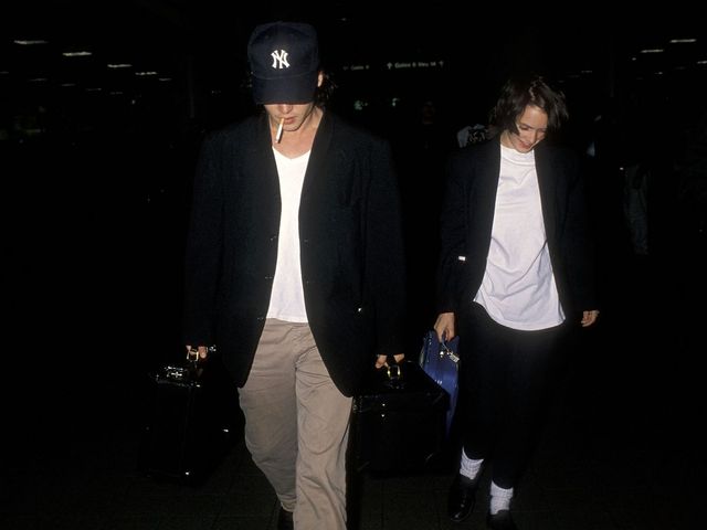영화 〈가위손〉에서 시작된 인연. 조니 뎁과 위노나 라이더가 남긴 커플 룩엔 내추럴한 멋이 있다. 1990년 LA 공항에서 포착된 이들의 공항 패션은 35년이 지난 지금 봐도 세련되고 클래식하다. 흰 티셔츠에 블레이저, 주름진 치노 팬츠와 낡은 더비 슈즈, 가볍게 눌러쓴 뉴에라까지. 위노나는 마치 조니의 옷장에서 꺼낸 듯한 보이프렌드 룩을 완성했다. 힘은 빼되, 디테일은 놓치지 않은 그들. 시간을 거스르는 커플룩의 전형이다.