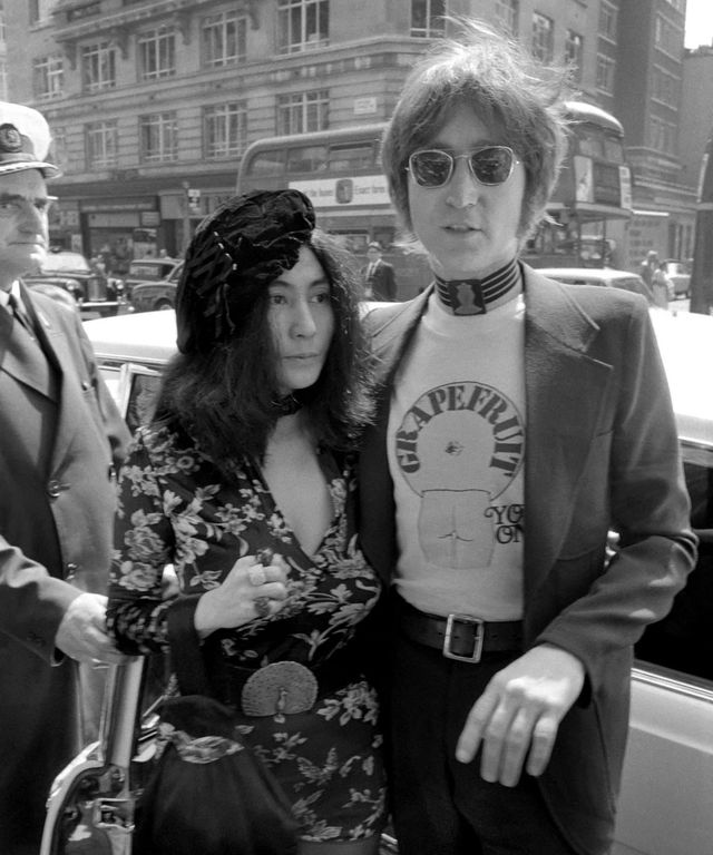 웨스턴 스타일을 즐긴 존 레논과, 시크함과 러블리함을 넘나드는 요코 오노의 보헤미안 룩은 언제나 독보적이었다. 1971년, 요코의 책 〈그레이프프루트〉 출간을 기념해 그는 책 커버가 프린트된 티셔츠를 그의 식으로 입어 화제를 모았다. 스키니 팬츠, 블레이저, 레더 벨트와 목을 감싸는 독특한 초커 네크리스 스타일링이 돋보였다. 요코는 깊게 파인 플라워 미니드레스에 레이스 베레모, 굵은 웨스턴 벨트로 디테일을 더해 두 사람만의 감각적인 ‘깨알 케미’를 완성했다