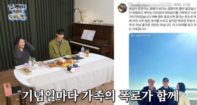 ‘폭싹 속았수다’ 이후 가족 간의 비하인드도 공개됐다. 조현아는 “아버님이 너 (SNS에) 자주 올리시던데?”라고 언급했고, 이준영은 “내 기념일마다 올리신다. 내가 먼저 올려야 하는데 아빠가 먼저 올리신다”라고 답해 웃음을 자아냈다. 그러면서도 “예전에는 ‘아버지가 왜 예전 사진을 올리실까’라고 부끄러웠다. 그런데 ‘폭싹’ 이후 가족애가 올라와서 그런지 뭉클하더라”라고 속내를 전했다.