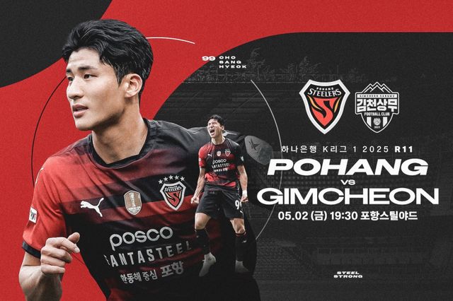 포항은 오는 2일 오후 7시 30분 포항스틸야드에서 김천 상무와 하나은행 K리그1 2025 11라운드를 벌인다.