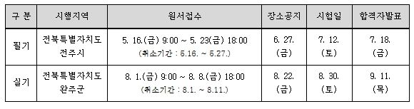 2025년도 필기시험은 7월 12일 전북특별자치도 전주시에서 실시되며, 접수는 5월 16일(09시)부터 5월 23일(18시)까지다. 실기시험은 전북특별자치도 완주군에서 8월 30일에 실시되며, 접수는 8월 1일(09시)부터 8월 8일(18시)까지다.