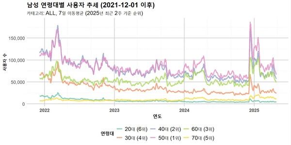 소상공인연구소 관계자는 “30대 이하 온라인 활동이 지속적으로 감소한 반면 60대 이상은 증가했는데 2025년에는 모든 세대의 활동이 증가했다”며 “30대 이하는 경제와 일자리 관련 뉴스에 참여도가 높고 정치는 5060이 높다”고 말했다.