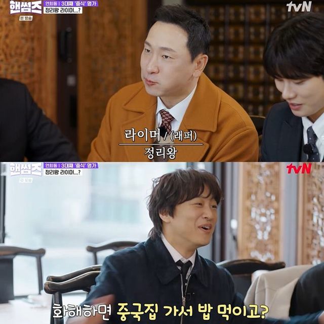 1일 방송된 tvN ‘핸썸가이즈’에는 래퍼 라이머가 게스트로 출연했다. 이날 점메추(점심 메뉴 추천)은 떡갈비와 중식이었다. 이이경, 신승호, 라이머가 중식을 차태현과 김동현이 떡갈비를 선택했다.
