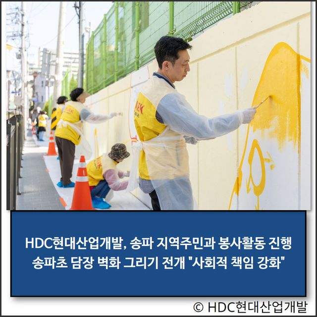 HDC현대산업개발(이하 HDC현산·294870)이 5월 가정의 달을 앞두고 지역 주민과 함께 서울 송파초등학교의 '벚꽃길 담장' 벽화 그리기 봉사활동을 했다.