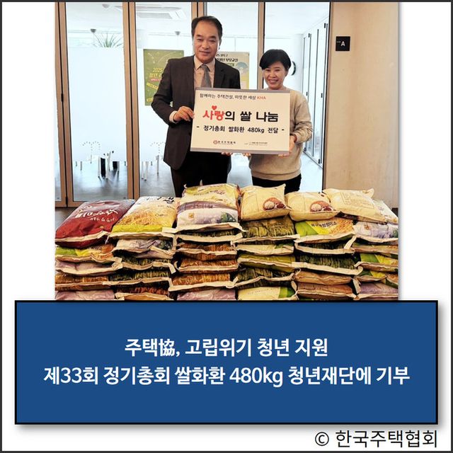 협회는 정기총회에서 기부 받은 쌀화환 480kg을 자립준비청년, 고립운둔청년 등과 같이 사회적 고립 위기에 처한 청년들을 지원하는 '푸른고래 리커버리 센터'에 전달했다.