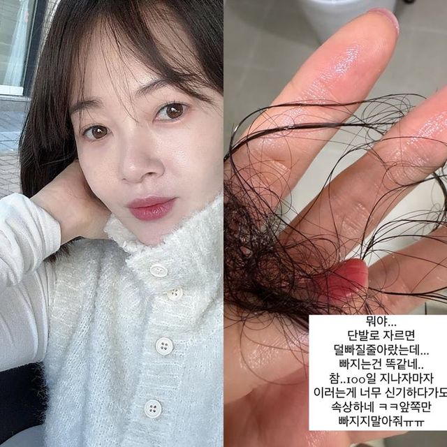 사진 속에는 김보미가 손바닥 위에 빠진 머리카락을 올려놓은 모습이다. 그는 “참… 100일 지나자마자 이러는 게 너무 신기하다가도 속상하네 ㅋㅋ 앞쪽만 빠지지 말아줘 ㅠㅠ”라고 덧붙였다.