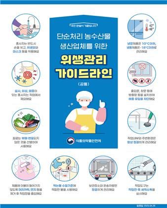 식약처는 단순처리 농·수산물 업체의 근로자의 70% 이상이 외국인인 점을 고려하여 다국어(영어, 베트남어, 태국어, 인도네시아어 등) 위생관리 가이드라인을 마련하여 보급한다는 계획이다.