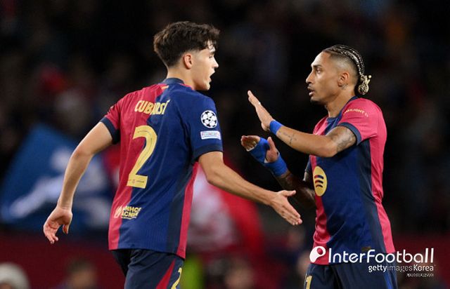 바르셀로나도 반격했다. 전반 24분 라민 야말이 오른쪽 측면에서 중앙으로 치고 들어와 날린 슈팅이 환상적인 궤적을 그리며 골대 맞고 골문으로 들어갔다. 전반 38분엔 하피냐가 동점골을 만들었다.