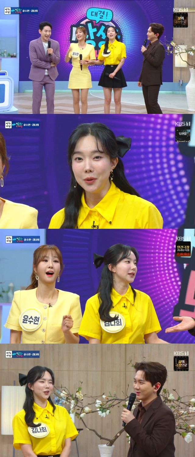 2일 방송된 KBS 1TV '아침마당'의 '쌍쌍파티' 코너에는 성유빈과 류지광, 김나희와 윤수현, 미스김과 나영이 게스트로 출연했다.