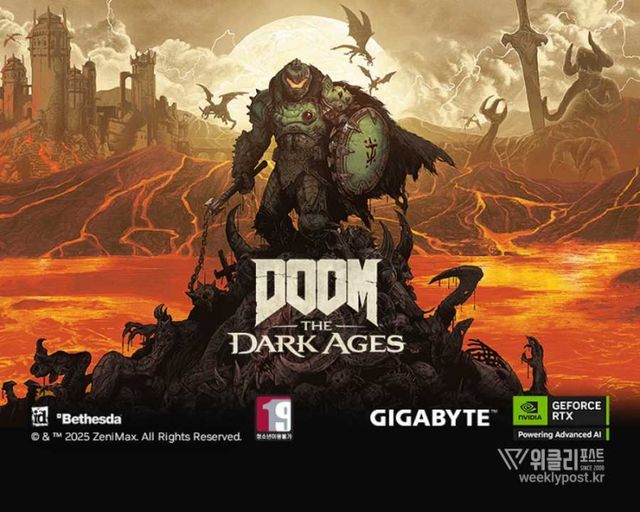 DOOM: The Dark Ages는 베데스다 소프트웍스와 id 소프트웨어가 공동 개발한 신작 FPS로, 중세 판타지와 SF가 결합된 세계관에서 지옥의 군세에 맞서는 둠 슬레이어의 전투를 그린다. RTX 50 시리즈가 지원하는 idTech8 엔진의 네이티브 레이 트레이싱과 DLSS 4를 기반으로 고해상도 이미지와 향상된 FPS를 제공한다.
