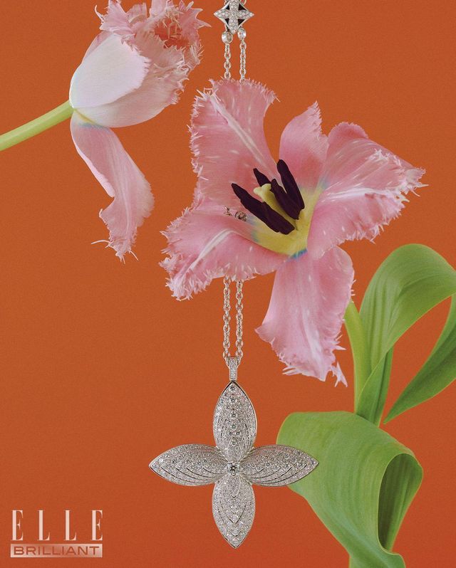 화이트 골드에 8.55캐럿의 브릴리언트 컷 다이아몬드와 0.49캐럿의 라운드 컷 다이아몬드를 세팅한 ‘이딜’ 네크리스는 가격 미정 LOUIS VUITTON.