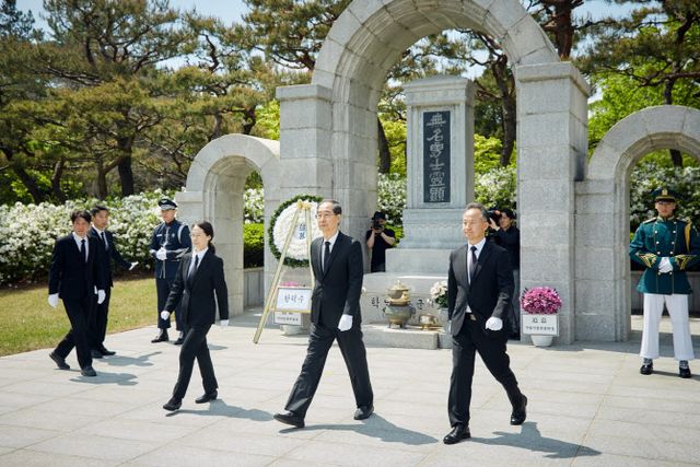 한 전 총리는 이날 현충원 현충탑을 찾아 참배했으며, 이후 방명록에 “우리나라가 갈등과 혼란을 딛고, 앞으로, 오직 앞으로 나아갈 수 있도록 전력을 다하겠다. 제21대 대한민국 대통령선거 예비후보 한덕수”라고 적었다.