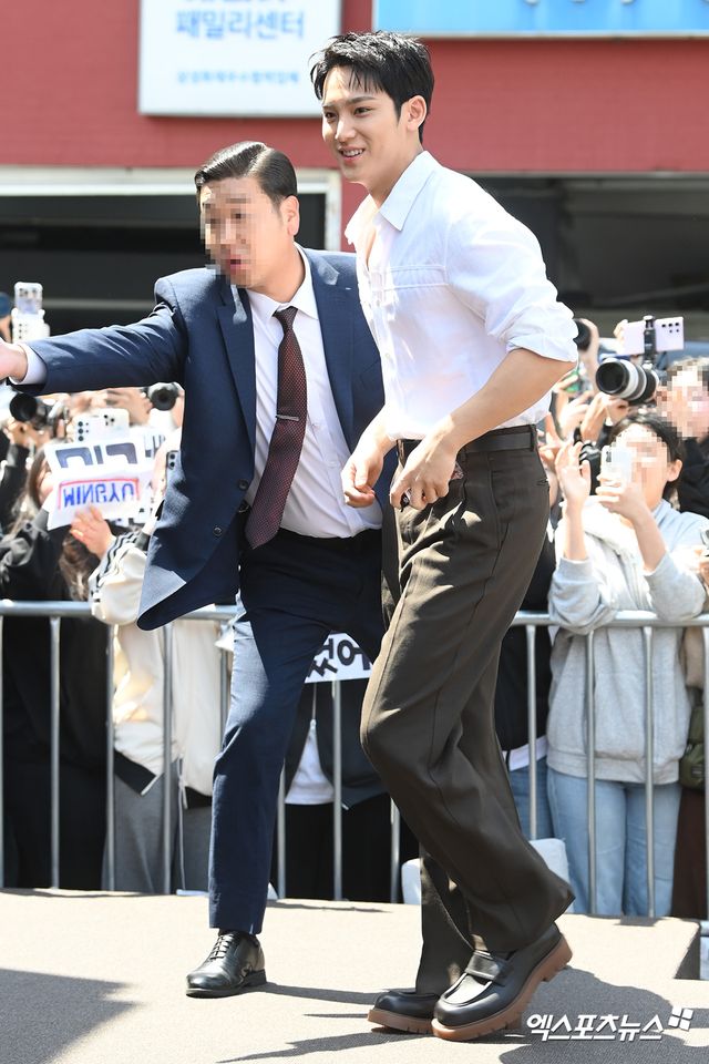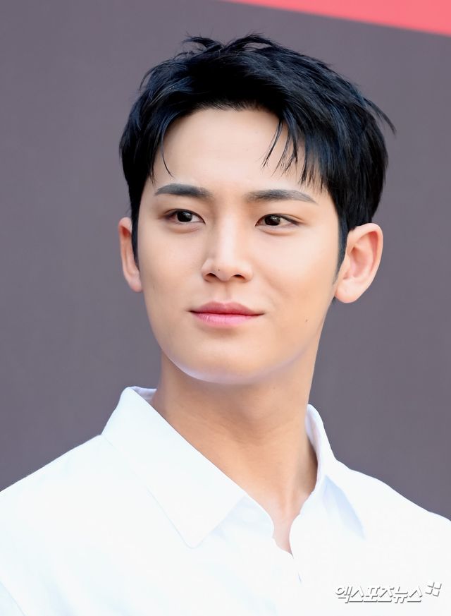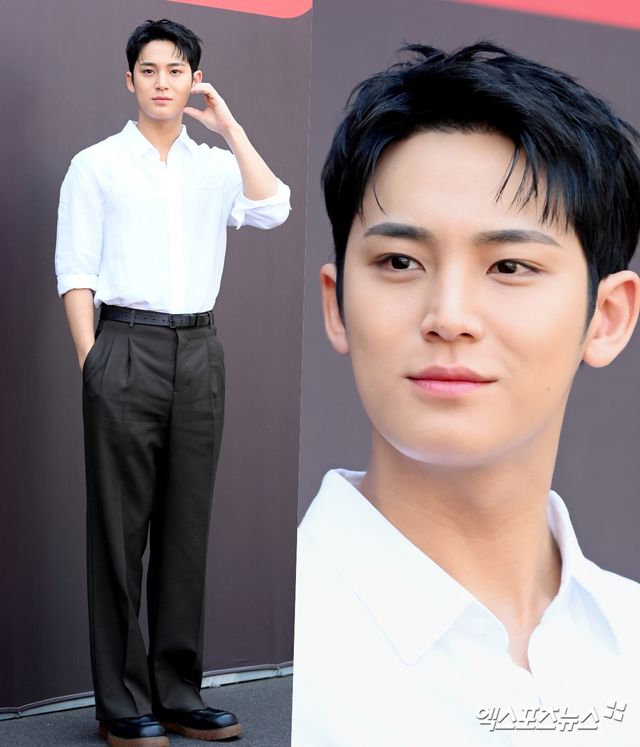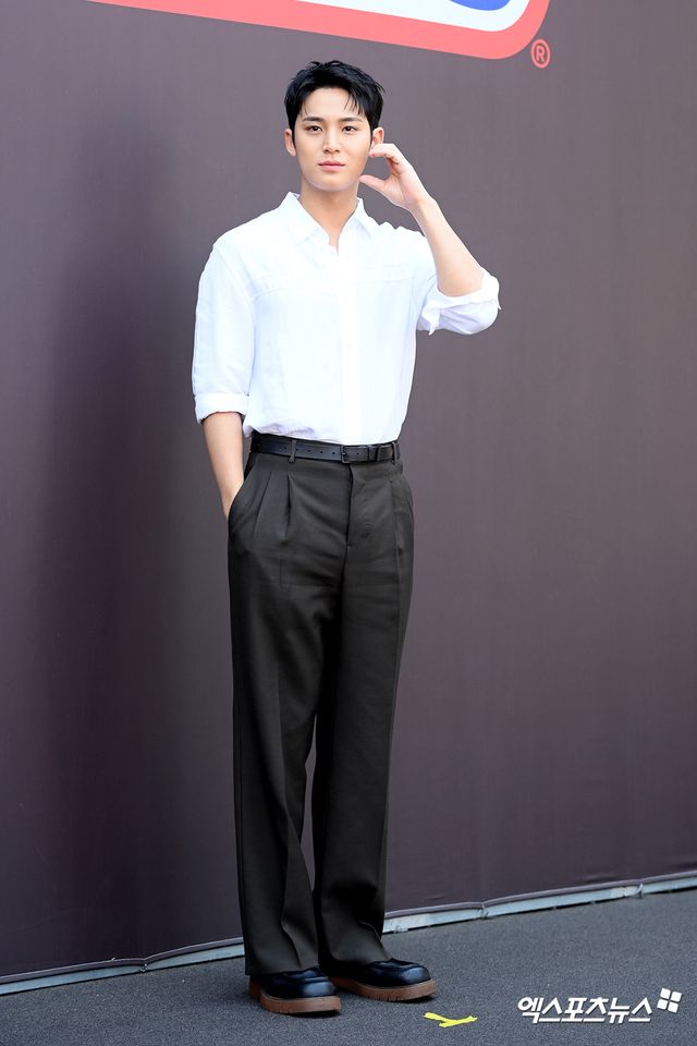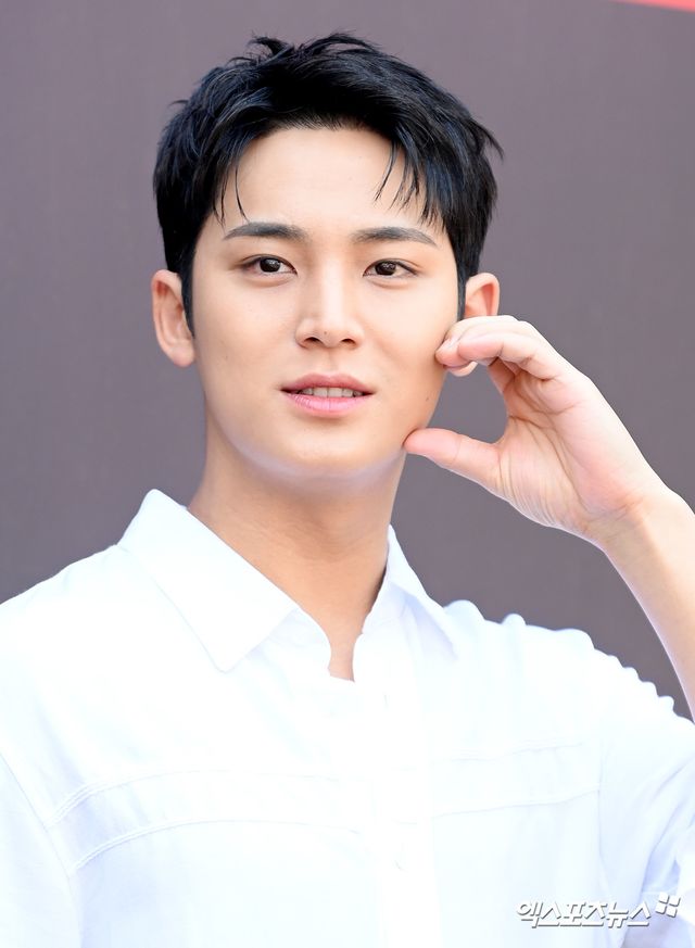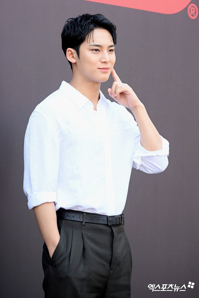 이날 행사에 참석한 세븐틴 민규가 포토타임을 갖고 있다.