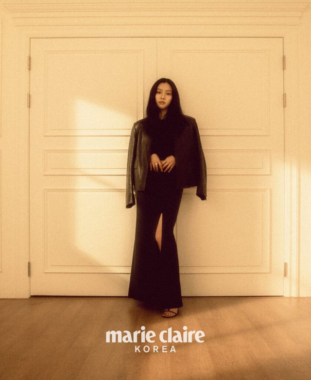 고민시 | 블랙 니트 톱, 스커트, 샌들 모두 Jil Sander, 실버 이어링 Tom Wood.