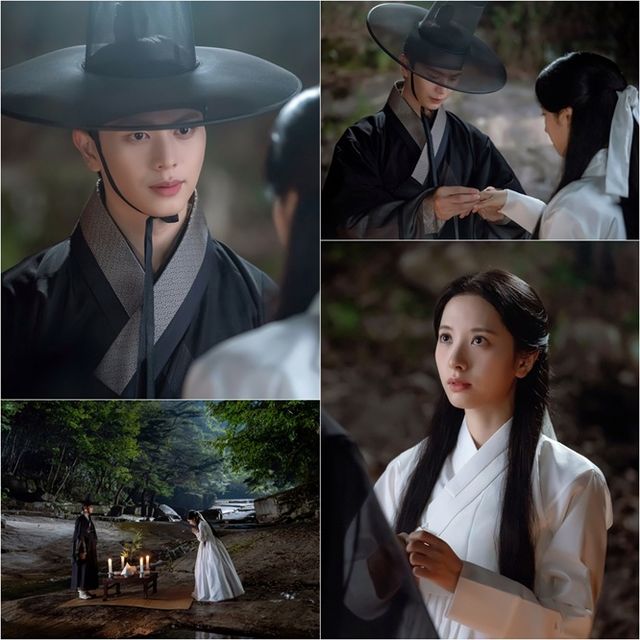 이들의 가운데에 자리 잡은 상차림과 불을 밝히고 있는 촛대들이 마치 둘만의 혼례상처럼 느껴지는 것. 더욱이 서로를 향해 으르렁거리던 이전의 모습과 달리 조심스럽게 여리의 손가락에 옥가락지를 끼워주는 강철이와, 그런 강철이의 모습에 발그레한 모습을 보이는 여리의 표정이 보는 이의 심장까지 콩닥거리게 만든다. 이처럼 둘만의 언약을 통해 '몸주신'과 '제자'라는 평생 떼려야 뗄 수 없는 관계로 거듭한 강철이와 여리가 앞으로 어떤 이야기들을 만들어 나갈지 '귀궁' 본 방송에 귀추가 주목된다.