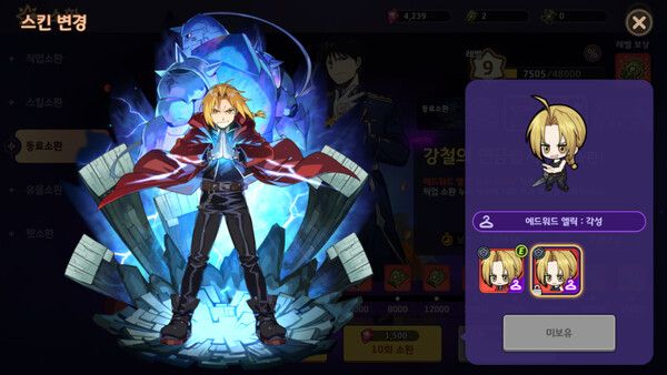 컬래버 캐릭터로 새롭게 추가된 동료 4인에도 원작 특색이 충실하게 반영됐다. 에드워드 엘릭, 알폰스 엘릭, 로이 머스탱, 리자 호크아이 등이 원작의 특징이 반영된 전투 스타일과 스킬을 구사한다.