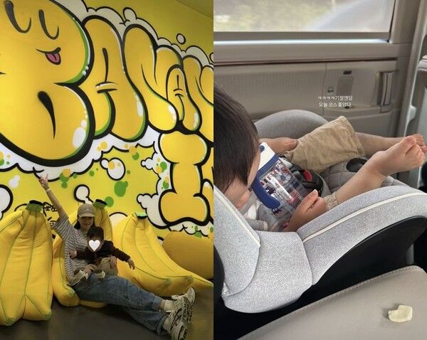 또다른 사진에는 손연재 아들이 차를 탄 모습이 담겼다. 손연재는 "기절 엔딩. 오늘 코스 좋았다"며 만족감을 표했다.
