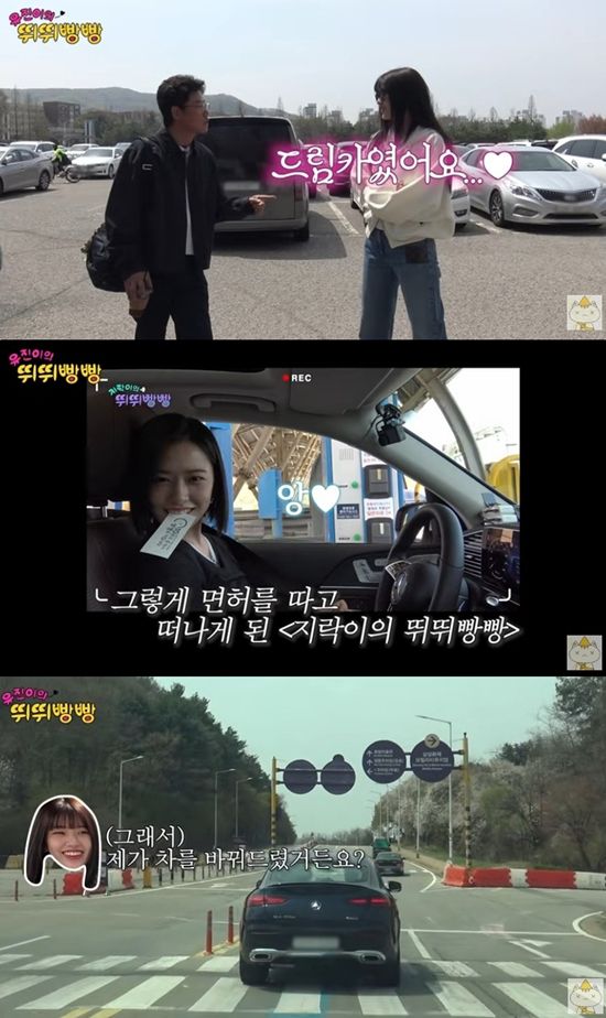 앞서 안유진은 지난해 '지구오락실'의 스핀오프 '지락이의 뛰뛰빵빵'에서 면허 내기로 면허를 따고선 첫 운전에 도전한 바 있다.