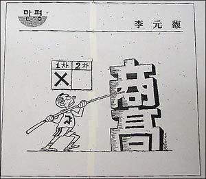 2002년 대선을 앞두고 '서울대 총동창회보' 4월호에 만평이 하나 실렸다. 서울대 마크가 찍힌 운동복 차림의 한나라당 이회창이 장대를 잡고 '상고(商高)'라는 장애물을 뛰어 넘으려는 모습이었다. 기록판의 1차 시기에는 X표가 그려져 있다. 1997년 이회창이 목포상고 출신 김대중에게 패배하고, 2002년 부산상고 출신인 노무현에게 도전하고 있음을 의미했다. 만평이 일으킨 파장은 컸다. 내심의 학벌 엘리트주의를 아무런 부끄러움 없이 그려낸 작가는 이원복 교수로 그는 이회창의 경기고 서울대 후배다.