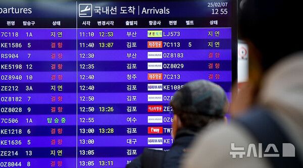 결항 항공기는 출·도착 각 10편씩이다. 30여편은 지연 운항되고 있다.