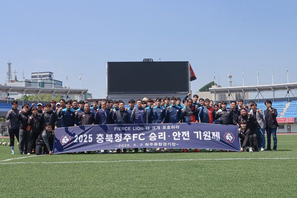 2일 충북청주는 보도자료를 통해 "5월 2일 금요일 청주종합경기장에서 잔디 보수 완료를 기념하여 임직원 및 선수단이 함께하는 승리 및 안전 기원제를 진행했다"라고 밝혔다.