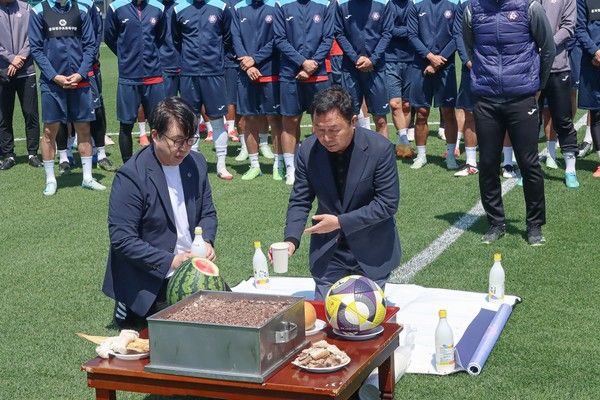 이번 기원제는 오는 5월 4일 오후 4시 30분에 예정된 하나은행 K리그2 2025 10라운드 수원삼성과 홈 개막전을 앞두고, 새롭게 단장된 홈 경기장에서의 첫 경기를 맞이하여 선수들의 안전과 팀의 승리를 기원하기 위해 마련됐다.