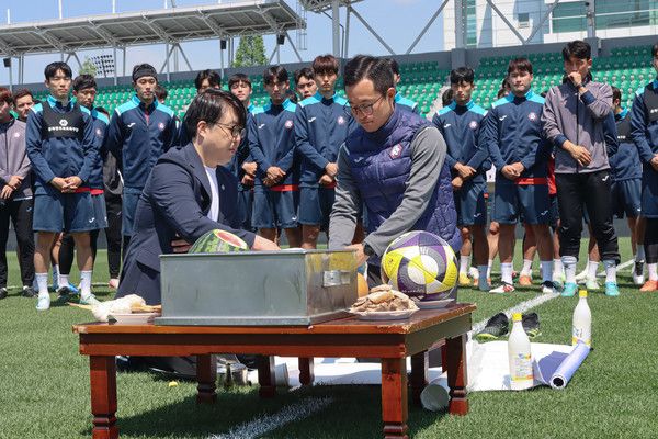 [풋볼리스트] 김희준 기자= 충북청주FC가 올 시즌 드디어 홈 개막전을 갖는다. 홈구장 개장을 앞두고 중요한 의식도 치렀다.