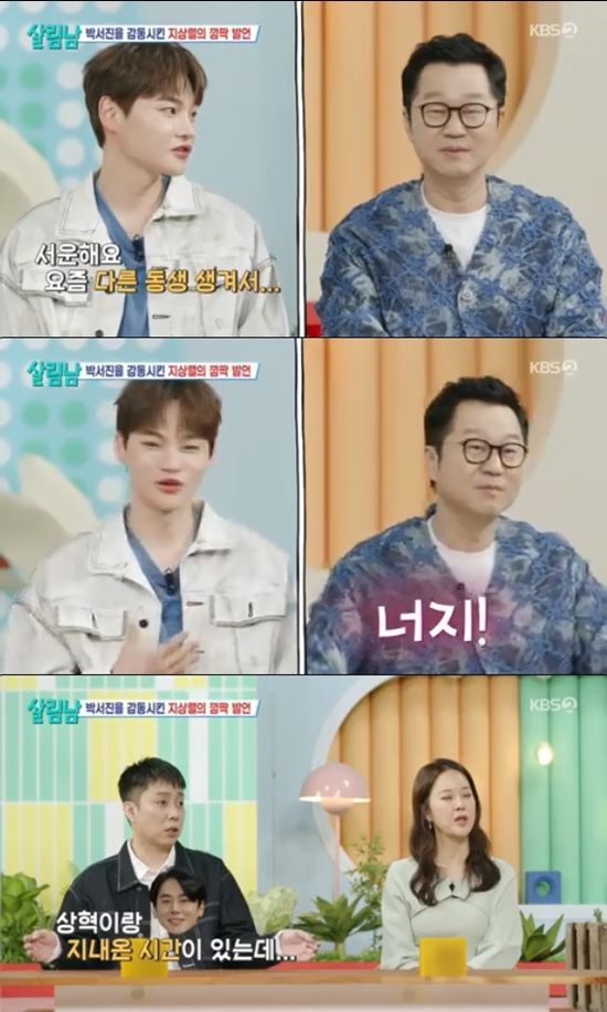 박서진은 "서운하다. 요즘 다른 동생 생겨서"라며 "여기서 확실하게 정해달라. 저냐 아니면 상혁이 형이냐"라고 한 명을 선택해 보라고 했다.