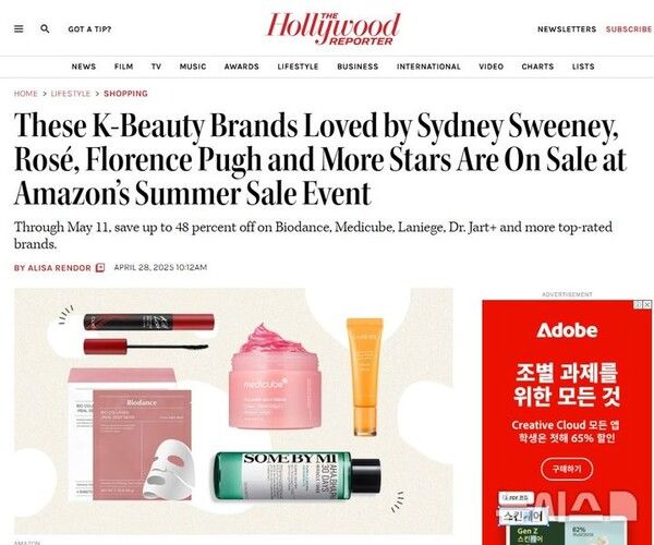 뉴시스 보도에 따르면, 연예 전문 매체 '할리우드리포터'는 지난달 28일(현지시각) "시드니 스위니, 로제, 플로렌스 퓨 등 스타들이 사랑한 K-뷰티 브랜드가 아마존 여름 세일 행사에서 판매되고 있다"고 소개했다.