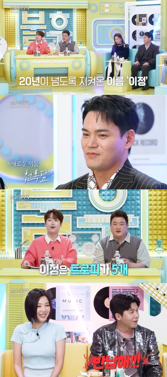 "이정이라는 이름으로 이미 '불후의 명곡' 트로피가 5개가 있다"는 말에 홍경민은 "반납하고 시작해라"라고 일침해 웃음을 자아냈다.