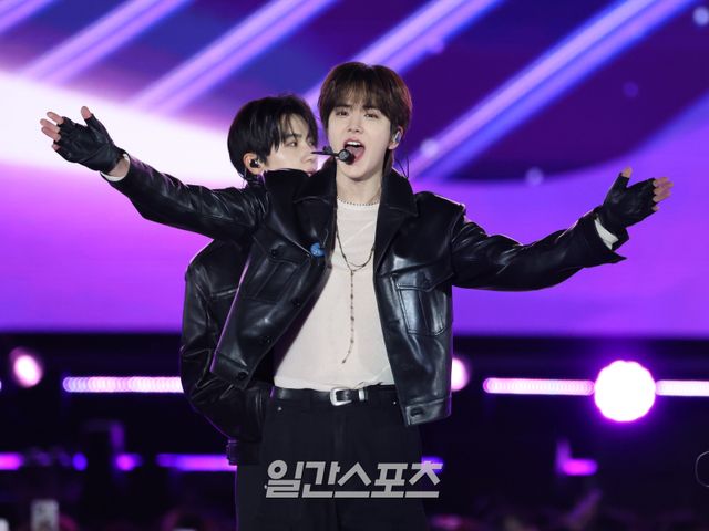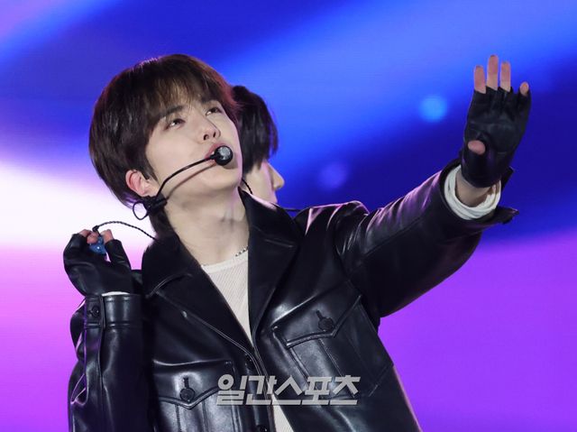 그룹 더보이즈 영훈이 3일 인천 서구 아시아드주경기장에서 열린 'Trend wave Festival 2025 (트렌드웨이브 2025)'에서 관객과 소통하고 있다.