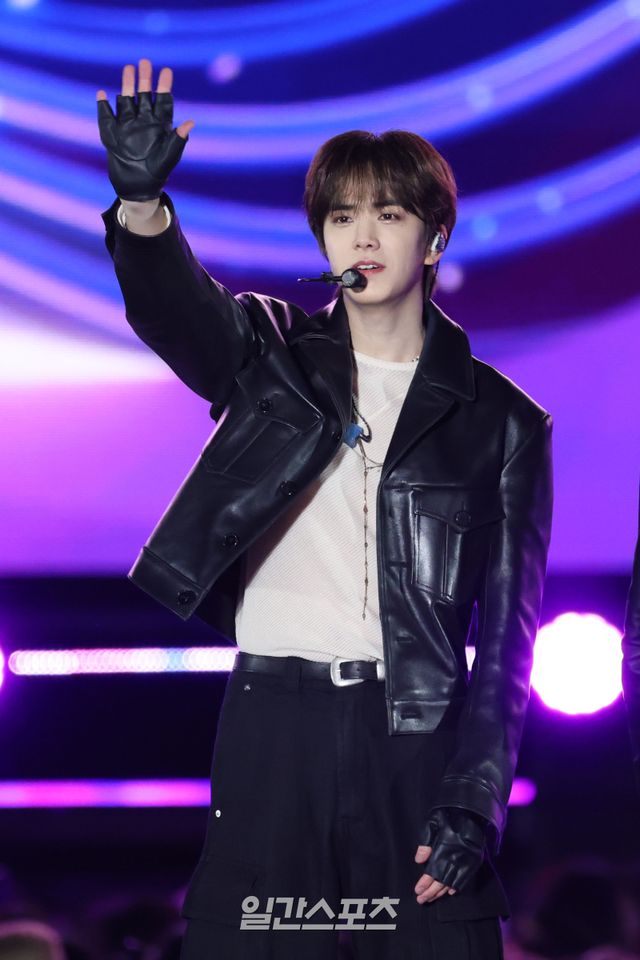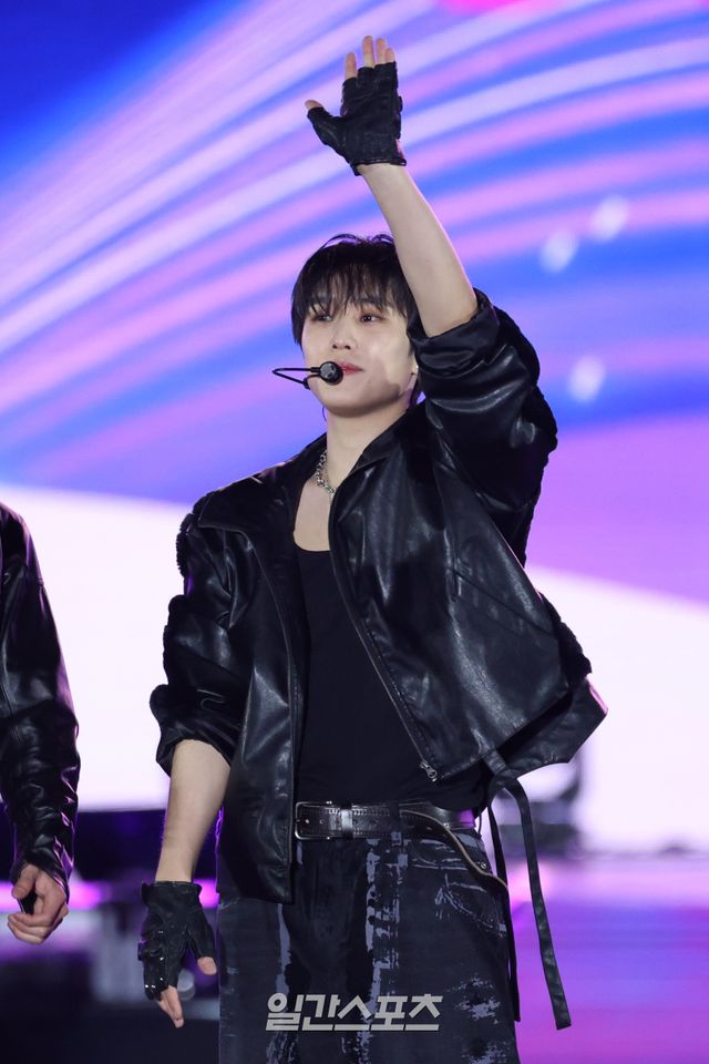 그룹 더보이즈가 지난 3일 인천 서구 아시아드주경기장에서 열린 'Trend wave Festival 2025 (트렌드웨이브 2025)'에서 관객과 소통하고 있다.