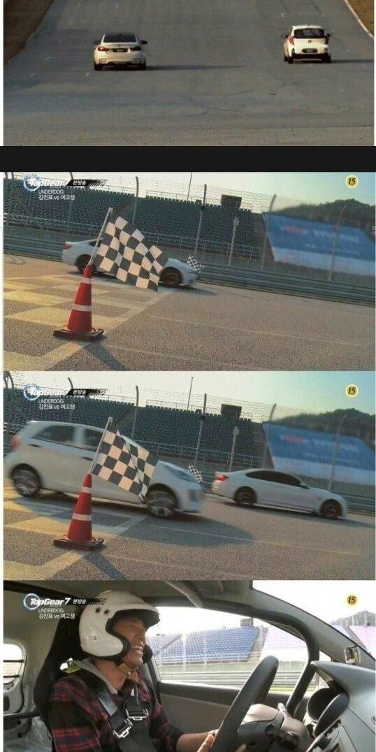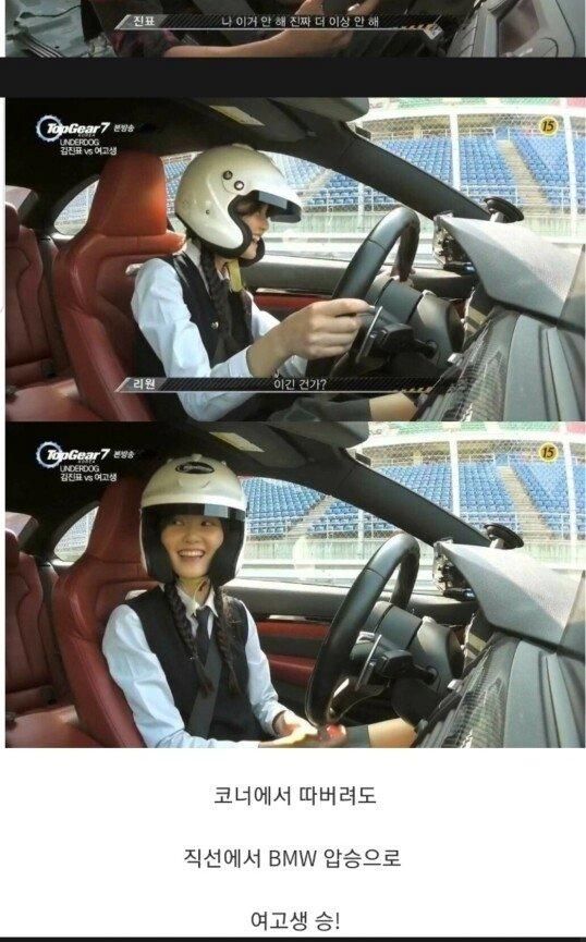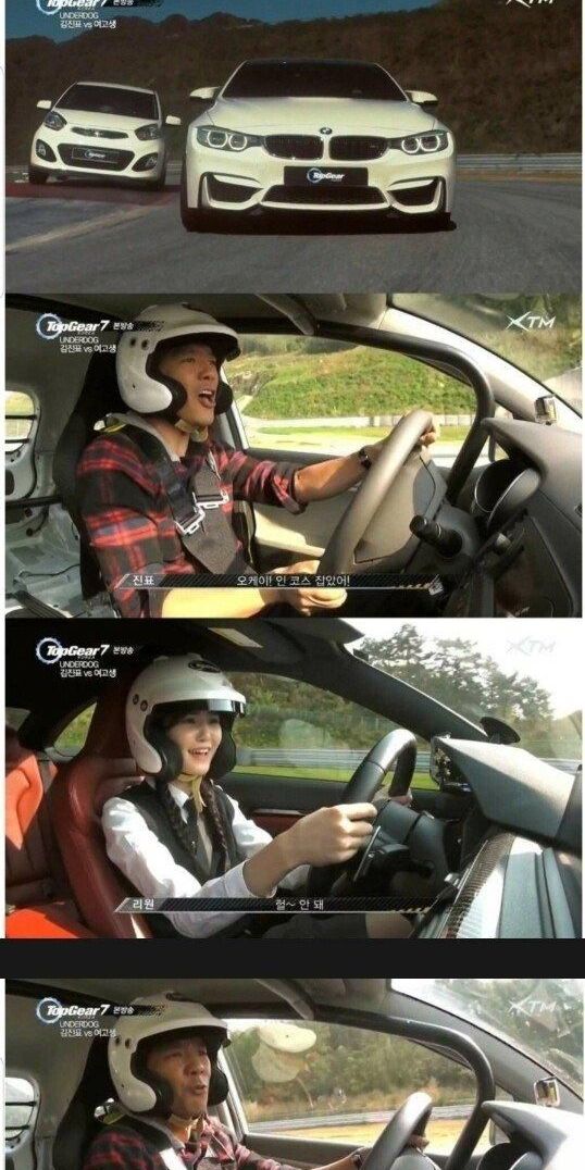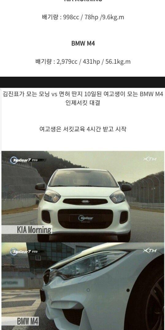 김진표가 모는 모닝 vs 면허 딴 지 10일 된 여고생이 모는 BMW M4 서킷대결.jpg