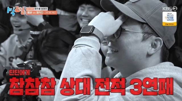 조 피디는 김종과 물구나무서기를 하겠다고 했지만, 딘딘은 “결혼식 직전이라 허리 다칠 수 있어서 안 된다”라고 선수를 보호했다. 김종민 역시 “미안하다. 내가 아이도 낳아야 해서”라면서 알까기 대결을 펼치기로 했다. 김종민도 제작진에게 패배, 패자석으로 격리됐다. 딘딘은 “메인 피디만 졌어”라고 다시 짚어 웃음을 자아냈다.