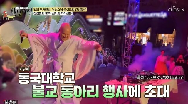 허영만이 “스님 복장하고 똥침 계속하면 안 된다”라고 당부하자 윤성호는 “그게 아니다. EDM 공연하면 다 손을 들지 않냐. 합장한 스님 그대로 올려서 나온 거다. 사람들이 보기엔 너무 신기한 거다. MZ들이 특히 좋아했다”라고 설명했다.
