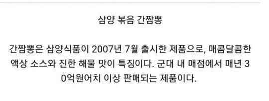군대에서 매년 30억이상 판매되는 음식 ㄷㄷ