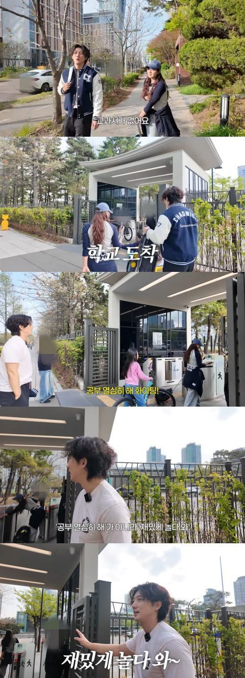 학교에 도착해 제작진이 "공부 열심히 해"라고 인사하자, 아빠 기태영은 "애들이 공부를 안 한다. '공부 열심히 해'가 아니고 '재밌게 놀다 와' 그래야 한다"고 솔직하게 털어놔 웃음을 자아냈다.