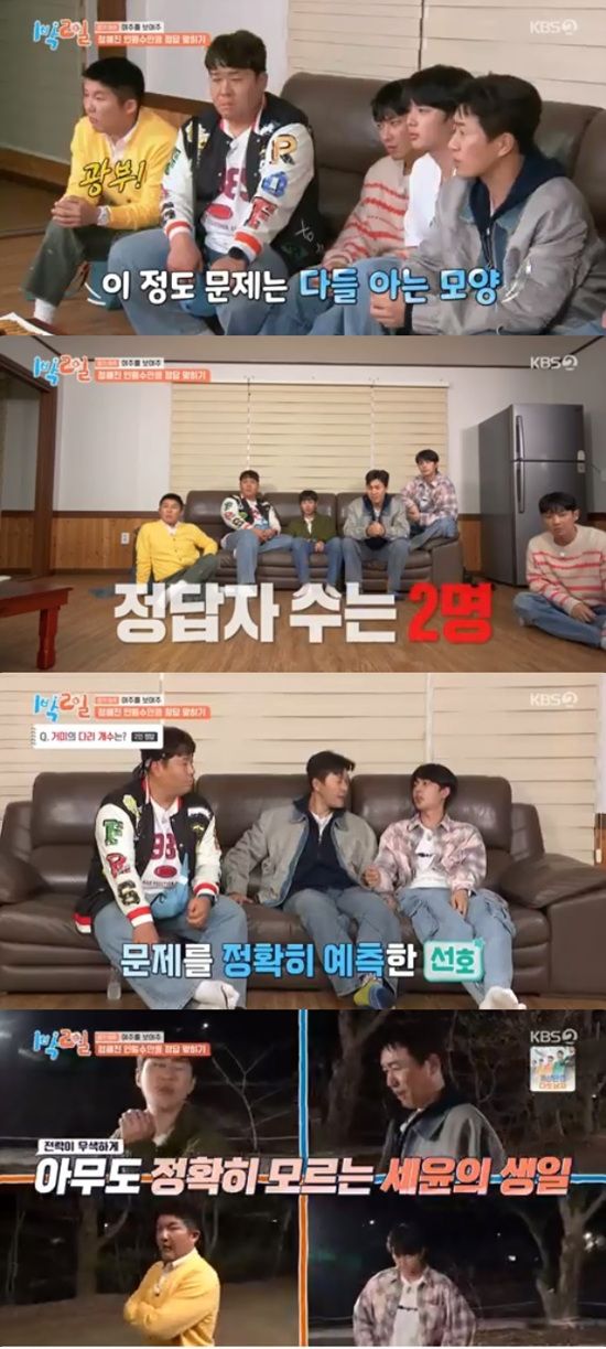 딘딘과 조세호는 10월, 김종민은 11월, 유선호는 7월이라고 말했다. 다섯 번째 순서로 등장한 문세윤은 자신의 생일은 5월이라고 얘기했다.