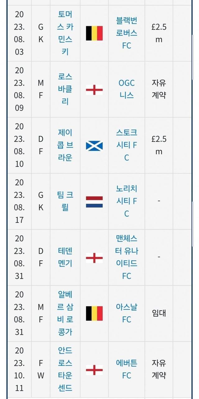 (심지어 기존 선수 방출 이적료 수입도 0원)