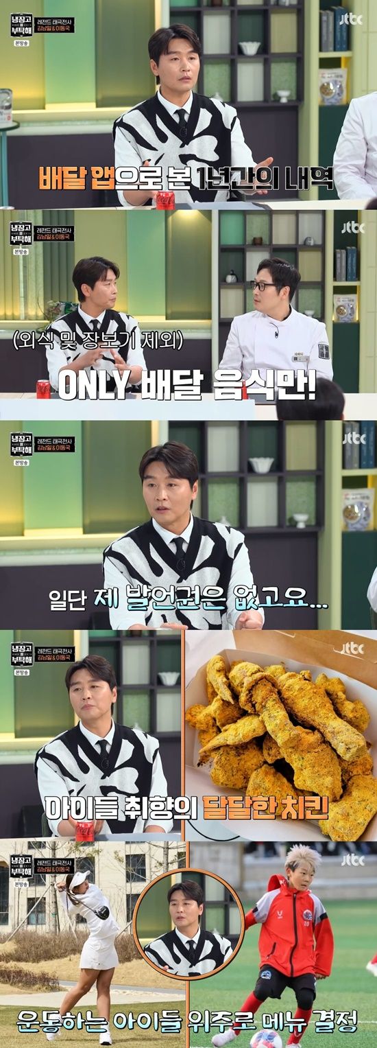 이동국은 "아이들이 좋아하는 치킨이라고 하면, 위에 무엇이 뿌려져 있는 것을 시키더라. 그런데 저는 단 것을 좋아하지 않는다. 치킨 두 마리를 시키면 다만 한 마리라도 내가 좋아하는 프라이드 치킨을 시켜줄만도 한데 안 그렇다"고 토로했다.