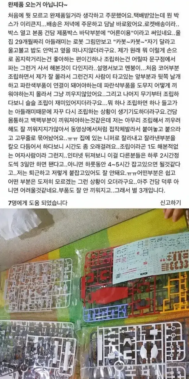 아들을 위해 건담을 구매하신 어머님이 별점 3개 준 이유,,