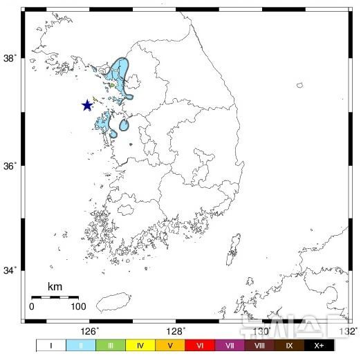 서울·경기·충남 지역 등은 조용한 상태나 건물 위층에 있는 소수의 사람만 느끼는 진도 II로 기록됐다.