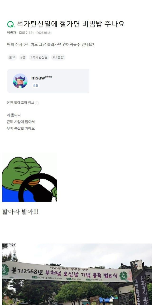 석가탄신일에는 절에서 밥을 공짜로 준대