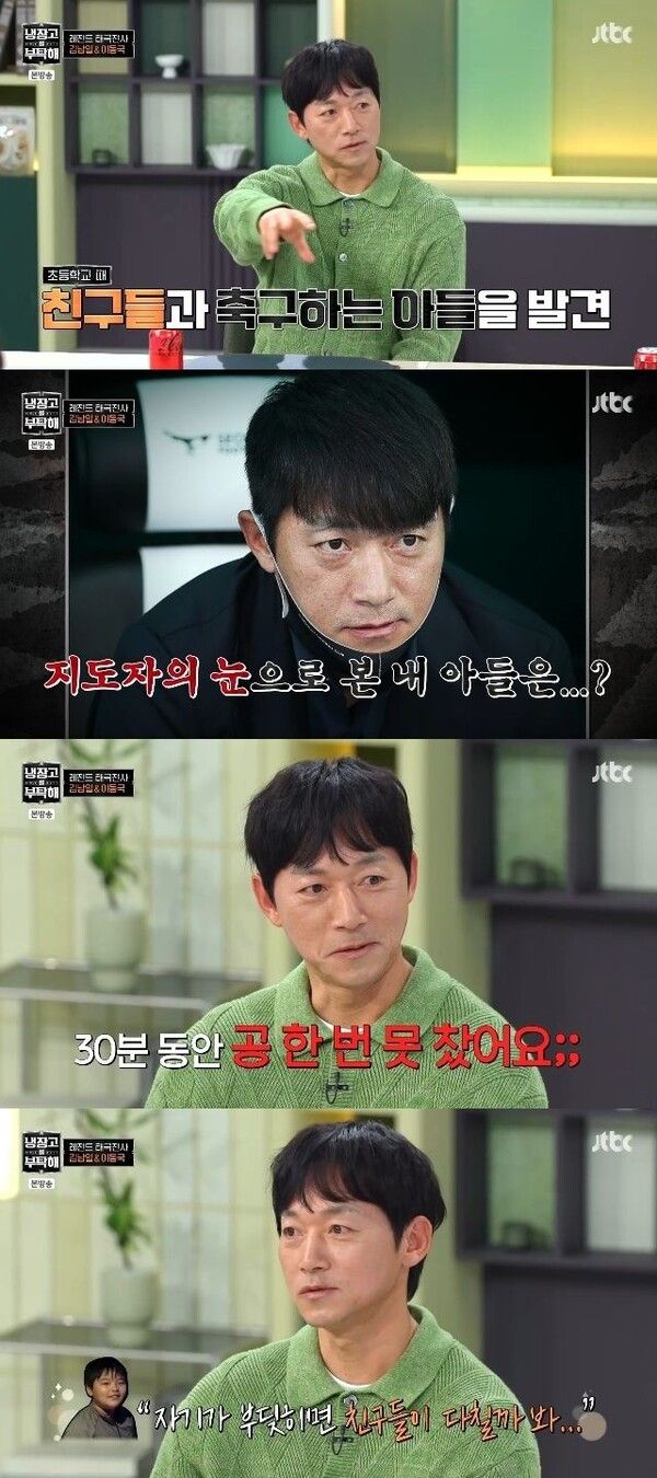 김남일은 "초등학교 때 친구들고 축구를 하더라. 30분 간 지켜봤다. 30분 동안 공 한 번 못 찼다"고 했다.