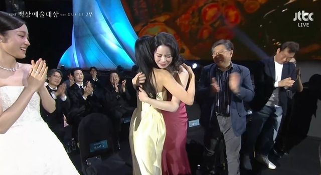 [TV리포트=남금주 기자] 전도연이 임지연의 축하 속에 영화 최우수 연기상을 수상했다.